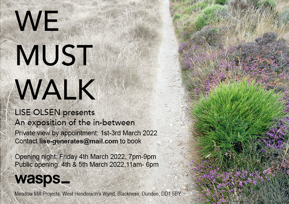 We Must Walk: An exposition of the in-between experiences that happen while walking in the Scottish landscape. The work aims to present the traces of what is hidden and reveal ephemeral moments using sound, image, and text.