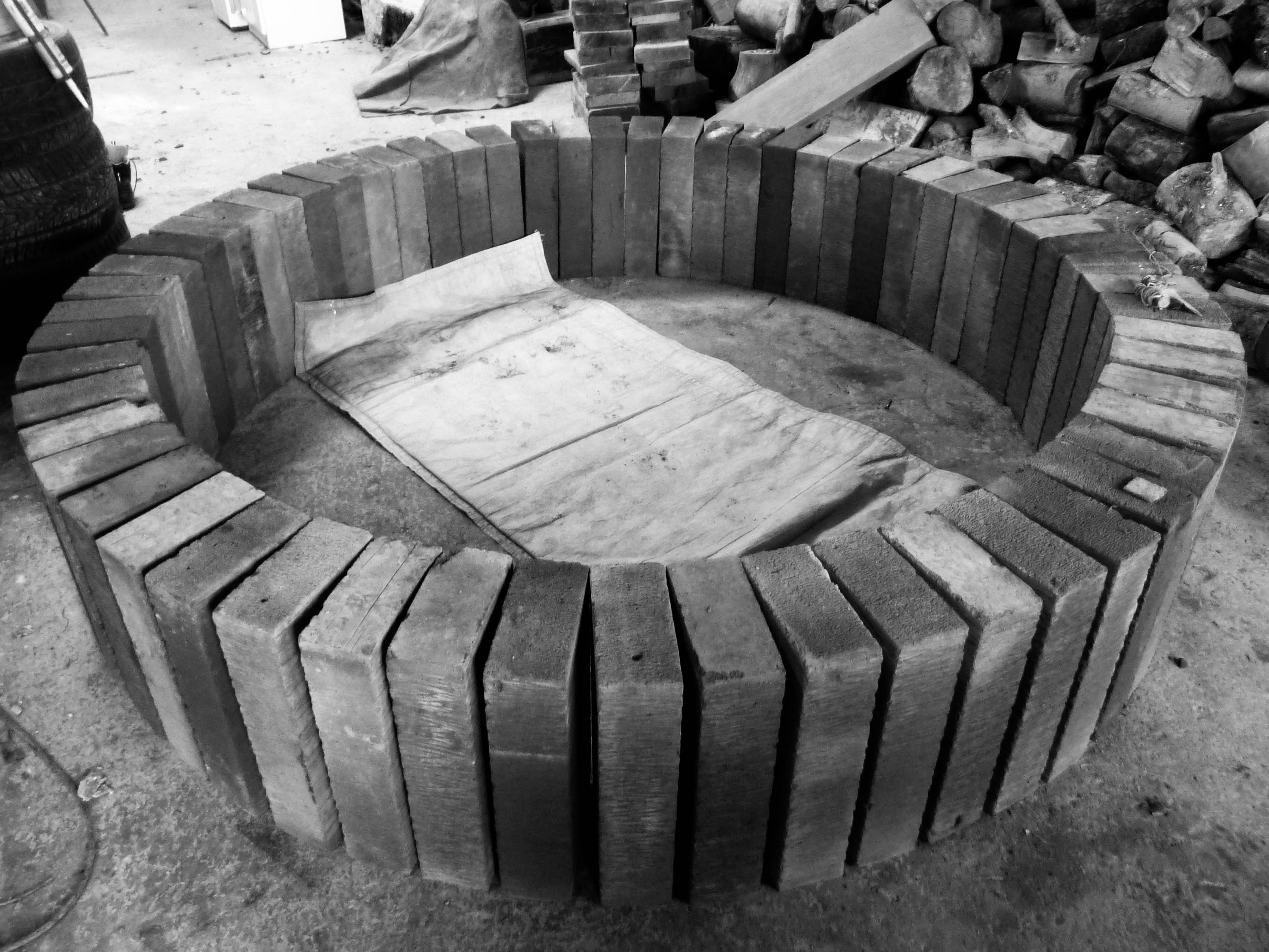Gravity is winning, every secound counts , the more time passes the stronger the structure. The stonemason makes the decision to add extra support, he tells me that it is his job to make sure the structure is sound for health and safety reasons. I feel a wave of sadness as the circle gains legs and I need to find a solution as I feel the legs ruin the whole look of the work. I have to either hide the legs or embrace them as a part of the work.